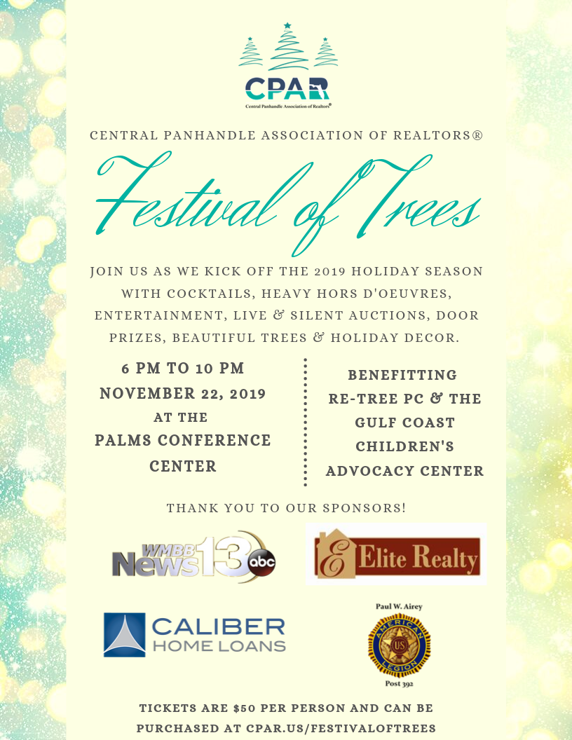 1 comments on "The Central Panhandle Association of REALTORS® Will Host Their 1st Festival of Trees Benefiting Gulf Coast Children’s Advocacy Center & ReTree PC"