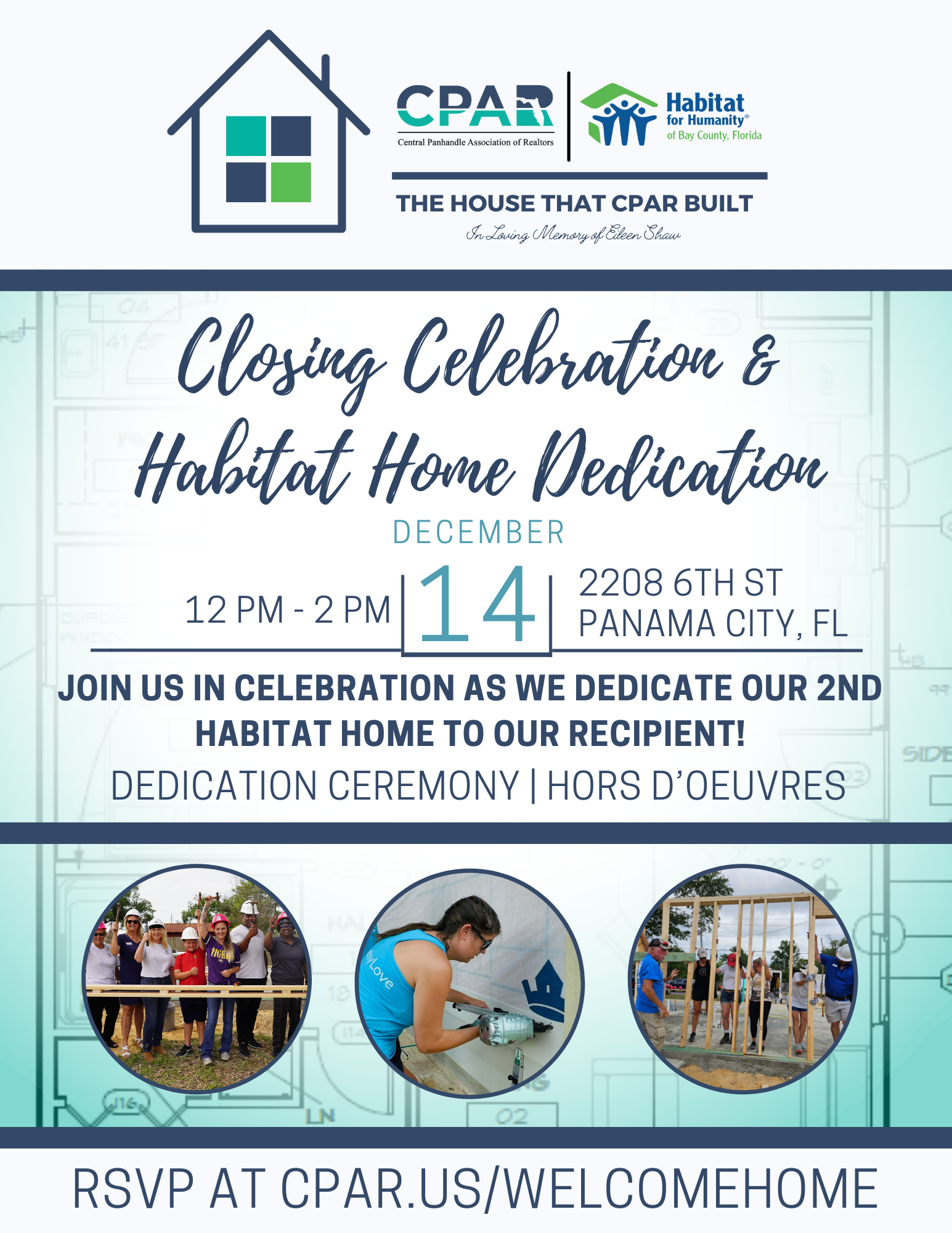 If you would like to bring a gift to the closing ceremony, please stop by the CPAR office to view our 'Angel Tree' that has ornaments listed with various items the homeowner is in need of.